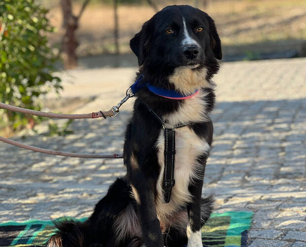 Astor ist vermutlich eine Hütehund Mischung, vielleicht ein Bordercollie Mischling.
