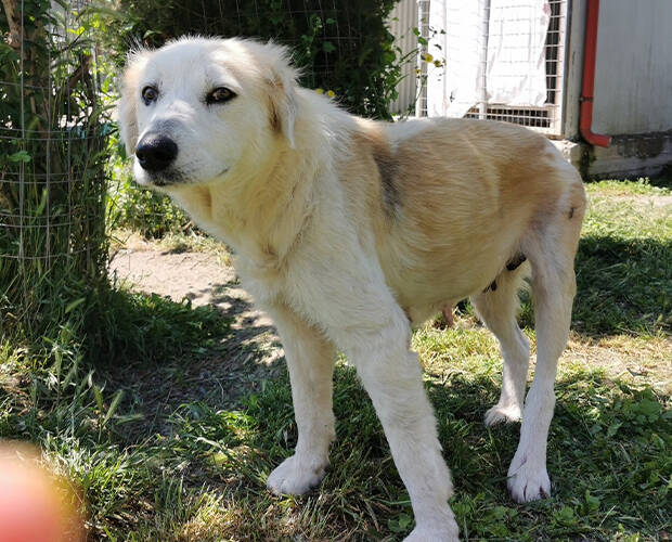 Eva ist eine ältere Hündin mit einer bewegenden Geschichte und einem Herzen aus Gold. Nach einer schweren Zeit kam sie in einem schlechten körperlichen Zustand ins Tierheim nach Epanomi.