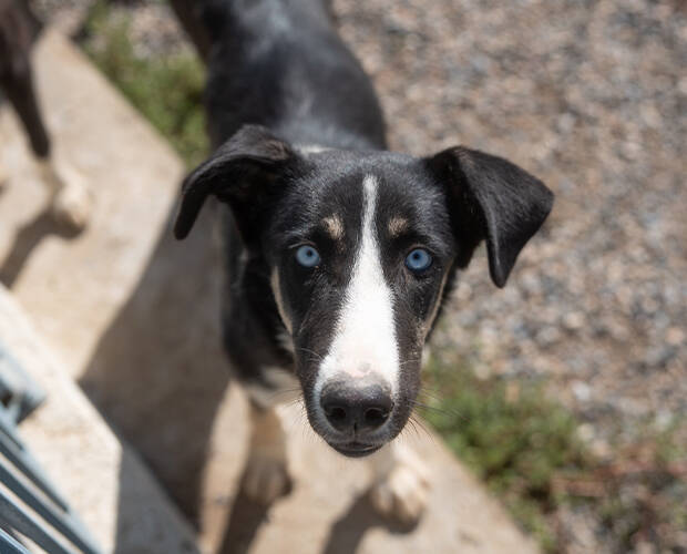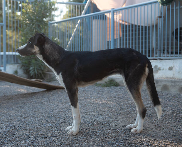 Sky ist ein verspielter aktiver Hund, der gerne mit unseren Junghunden zusammen ist. Menschen gegenüber ist sie erstmal skeptisch und benötigt da ihre Zeit. Beschäftigt man sich mit ihr, kommt sie vorsichtig heran und man spürt ihre große Neugier.