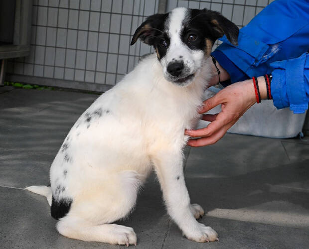 . Lametta ist das zarteste Mädel im Wurf. Sie hat kurzes Haar. Von der Färbung ist sie weiß mit etwas schwarz. Sie ist agil und welpentypisch auch ein wenig frech. Lametta ist energiegeladen, verspielt und kämpft und kuschelt gerne mit den Anderen. Sie liebt Menschen und deren Aufmerksamkeit und Streicheleinheiten. Sie ist insgesamt eine aufgeweckte Welpin, witzig und immer gut drauf. Der Besuch einer Hundeschule wird empfohlen; Lametta braucht liebevolle und konsequente Führung. Die Welpen haben ihre ersten Impfungen erhalten. Ab Mitte April sind sie ausreisefertig. Da wir nur die Hundemutter kennen, können wir keine genauen Angaben zu den vereinten Rassen machen. Wichtig ist uns jedoch, dass sich zukünftige Halter bewusst sind, dass ein Welpe viel Zeit, Geduld und Verantwortung erfordert. Eine liebevolle, aber konsequente Erziehung ist von Anfang an unerlässlich. Der Besuch einer Hundeschule ist daher sehr empfehlenswert. Ein Welpe ist zeitintensiv, insbesondere das Alleinebleiben muss Schritt für Schritt und mit viel Geduld aufgebaut werden. Es sollte selbstverständlich sein, dass ein Hund nicht täglich über acht Stunden alleine bleibt. Ebenso wichtig sind regelmäßige Spaziergänge mit ausreichender geistiger und körperlicher Auslastung, damit sich der Hund gesund und ausgeglichen entwickeln kann. Unsere Tiere sind alle geimpft, gechipt und haben einen EU-Ausweis. Sie werden altersentsprechend auf Mittelmeerkrankheiten gecheckt. Siehe dazu Info auf unserer Homepage. Jeder vermittelte Hunde macht Platz für einen jener Hunde, die hungernd und ausgemergelt ihr Dasein fristen müssen.