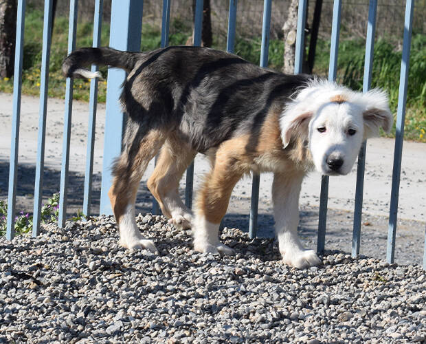 Juna kam mit ihrer Schwester und ihrem Bruder mit einem starken Räudebefall zu uns ins Tierheim. Sie wurden ohne Elterntiere auf einem unbewohnten Grundstück gefunden. Vermutlich mal wieder ausgesetzt.